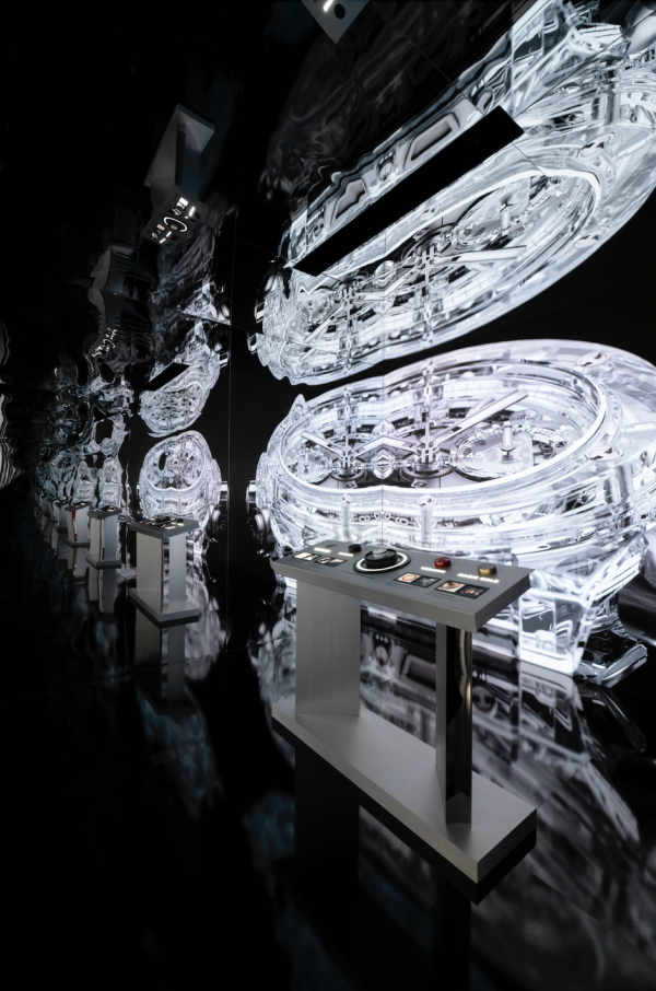 In a minimalist, modern, and luminous setting inspired by the "lab-tech" universe, visitors are invited to wander freely and discover several boxes showcasing Hublot watches. More than just display cases, each of these boxes presents a dreamlike world, inspired by the brand's iconic materials. These installations reveal the many facets of the Big Bang and surprised visitors with their avant-garde nature, where innovation meets art. Visitors themselves become part of the Hublot story through various interactive features inside boxes and an immersive space where they can create their own dreamscape — inspired by Hublot’s latest campaign — with a simple hand gesture.